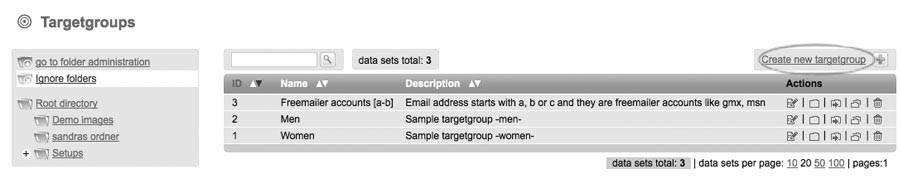 In ETRON E-Mail Marketing, you are offered the option to sort the subscribers in target groups. There are many possibilities for organization – such as sex, age or interests. In order to simplify the beginning, 3 target groups are already defined in ETRON E-Mail Marketing.