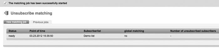 Now, ETRON E-Mail Marketing starts the matching and, after having finished, it informs you about the number of the deleted subscribers. |