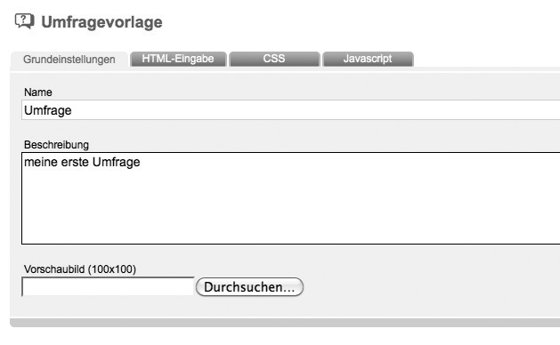 Set a survey-name and a optional description here as usal. Use the 'Durchsuchen...' button to upload a thumbnail.