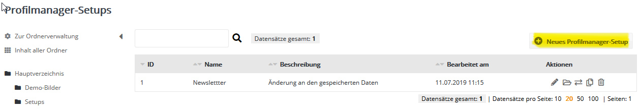 Bereits angelegte Profilmanager lassen sich nachträglich bearbeiten ('öffnen'), in Unterordner 'verschieben' und 'löschen'. Sollten Sie eine Verschiebung in Unterordner bereits vorgenommen haben, lässt sich über die Schaltfläche 'Ordner öffnen' in den Unterordner wechseln.